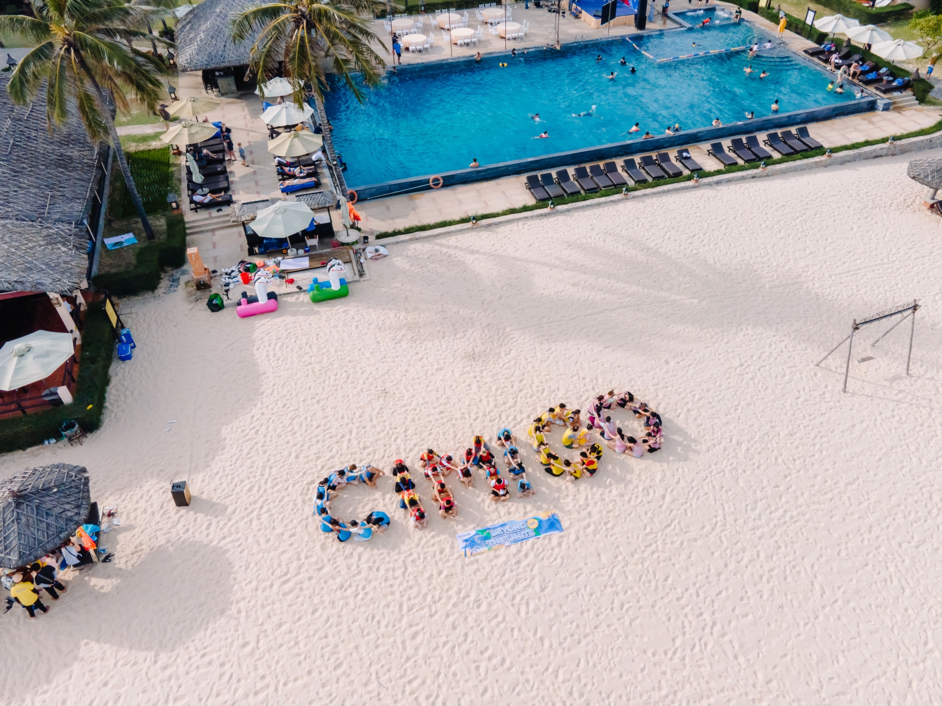 Với bãi biển rộng, ánh nắng đẹp và tinh thần đồng đội đầy màu sắc, Gem Production đã lựa chọn góc bay tối ưu, giúp tái hiện không khí sôi động – kết nối – sáng tạo của toàn bộ chương trình.