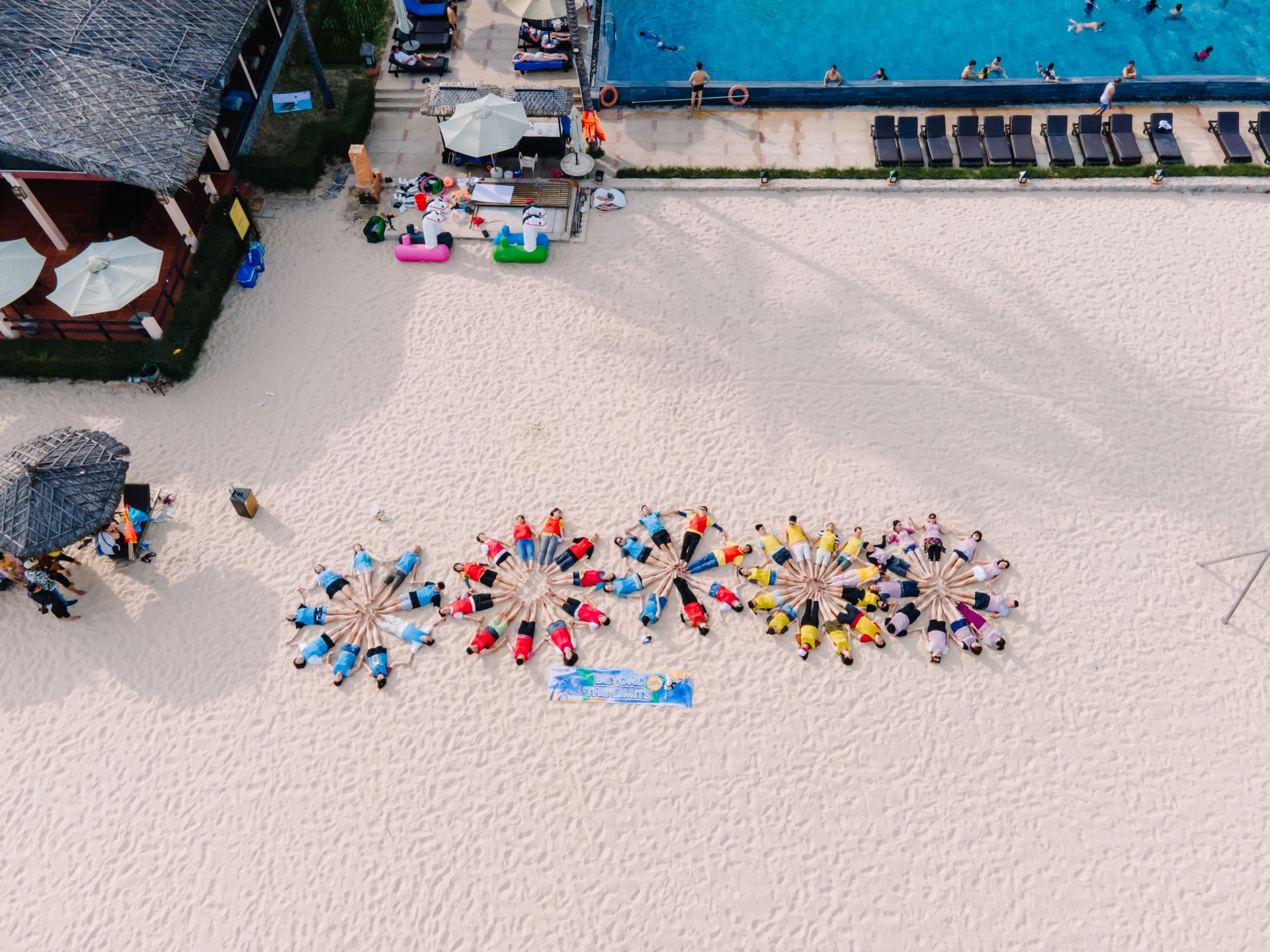 Với bãi biển rộng, ánh nắng đẹp và tinh thần đồng đội đầy màu sắc, Gem Production đã lựa chọn góc bay tối ưu, giúp tái hiện không khí sôi động – kết nối – sáng tạo của toàn bộ chương trình.