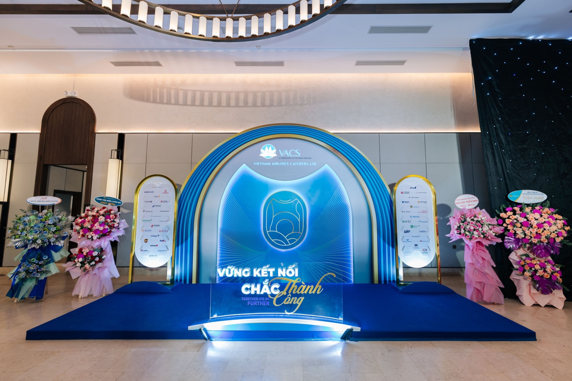 Không gian tổ chức trang trọng, thiết kế đồng bộ và mang tính nhận diện cao